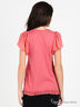 Детали: короткий шифоновый рукав, округлый вырез горловины, застежка на пуговицы, шифоновая оборка, один кармашек, изделие украшено металлическими декоративными элементами