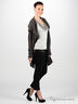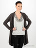 Детали: широкий отложной воротник в рубчик, переходящий в планку, длинный прямой рукав с высокой манжетой в рубчик
