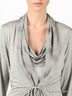 Детали: завязывается на трикотажные ленты спереди, отложной воротник, переходящий в планку дополнен шифоновой вставкой
