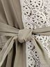 Очаровательный кардиган с длинными рукавами и округлым вырезом горловины. Спереди изделие декорировано вставкой из кружева. Модель дополнена поясом, подчеркивающим талию. Отличный вариант на каждый день.