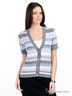 Детали: застегивается на пуговицы; короткий рукав с отворотом; декорирован оригинальной вязкой и принтом-полоска