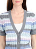 Детали: застегивается на пуговицы; короткий рукав с отворотом; декорирован оригинальной вязкой и принтом-полоска