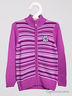 Кардиган фиолетового цвета для девочки. Горловина, рукава и низ изделия - трикотажная резинка. Застежка - молния. Декоративный элемент - нашивка в форме цветочка на полочке.