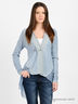 Оригинальный кардиган из шерстяного трикотажа. Длинный рукав-реглан на манжете, полочка декорирована оригинальной вязкой, на спине вставка из креп-жоржета с контрастными завязками, застежка на булавку. В этом кардигане Вы не останетесь без внимания.