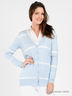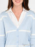 Детали: V-образный вырез горловины, застежка на пуговицы на полочке, контрастные полоски