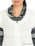 Вязаный женский кардиган с короткими рукавами и округлым вырезом горловины. Застежка на пуговицы. Спереди два удобных накладных кармана декорированных пуговицей и складкой. Изделие украшено рельефными вязаными узорами.