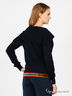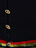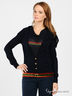 Элегантный кардиган с длинным рукавом, оригинальным воротом и V-образным вырезом горловины. Застежка на пуговицы. Изделие выполнено из кашемирового трикотажа средней плотности. Нижняя часть декорирована контрастной бархатной лентой. Яркость и лаконичность дизайна.
