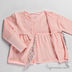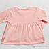 Расклешенная модель застегивается на одну пуговицу. На уровне талии к изделию пришиты тонкие хлопковые полоски ткани, завязывающиеся и несущие функцию застежки. Манжеты и низ изделия - трикотажные резинки.