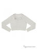 Трикотажный кардиган для девочки. Застежка- пуговицы в тон изделия. Округлая горловина декорированная искусственными камнями. Горловина, рукава и низ изделия - трикотажная резинка.