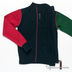 Детали: ворот-стойка, застежка на молнию, контрастные разноцветные длинные рукава, аппликация на спинке