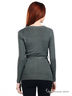 Детали: длинные рукава, застежка на пуговицы, манжеты рукавов и низ изделия оформлены в рубчик, спереди два накладных кармана, талия подчеркнута поясом