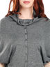 Детали: широкий воротник хомут, застежка на пуговицы, оригинальный крой рукавов, манжеты рукавов с эластичной вставкой, низ изделия оформлен в рубчик