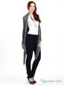 Детали: отложной воротник, талия с вставкой в рубчик, изделие завязывается спереди, рукава ажурной вязки средней плотности