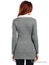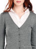 Детали: застежка на пуговицы, V-образный вырез, спереди два накладных кармана, рукава и низ изделия оформлены в рубчик