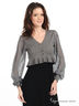 Детали: застегивается на пуговицы; рукава из шифона с манжетами в виде трикотажной резинки; низ изделия дополнен трикотажной резинкой