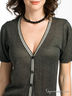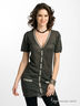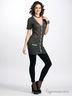 Детали: V-образный вырез горловины, застежка на пуговицы, накладные карманы, короткий рукав