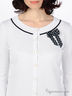 Детали: округлый вырез горловины, застежка на пуговицы, на полочке брошь в виде бантика
