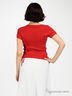 Яркий трикотажный джемпер с запахом. Фиксируется пояском. Глубокий вырез декольте. Короткий рукав-реглан. Манжеты и низ изделия выполнены в виде резинки. Изделие декорировано вышивкой и кружевными вставками.