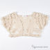 Нарядный вязаный кардиганчик свободного кроя с коротким рукавом. Декорирован вязаным кружевом.