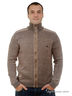 Меланжевый кардиган с молнией спереди, воротником с планками по бокам, деталями из саржи на плечах и вышивкой. Спинка, воротник, манжеты и низ в рубчик 2x2, нашивка справа внизу с принтом и люверсом.