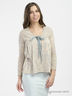 Кардиган с длинными рукавами свободного кроя. В качестве застежки - две ленты контрастного цвета. Отличный вариант на каждый день.