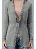 Элегантный кардиган с завязкой на талии. Модель выполнена с длинными рукавами. Дополнено изделие рюшами. Лаконичный дизайн и совершенство стиля подчеркнут Вашу индивидуальность.