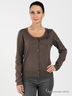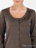 Детали: округлый вырез горловины, застежка на пуговицы на полочке, длинный рукав, полочка декорирована тканевыми элементами