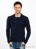 Стильный кардиган с двубортной застежкой на пуговицы и отложным воротником. Манжеты рукавов и низ изделия выполнены из трикотажной резинки.