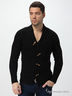 Элегантный кардиган с длинными рукавами и V-образным вырезом горловины с отложным воротом. Модель с центральной застежкой на пуговицы.