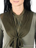 Детали: широкий оригинальный шифоновый ворот, продолжающийся поясом, который завязывается на спинке, рукав посажен на манжету