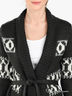 Модный кардиган с длинными рукавами и отложным воротником. Изделие выполнено мягкого вязаного материала с узором. Прямой силуэт. Талия подчеркнута поясом. Шикарный вариант на каждый день!