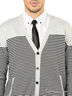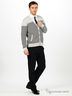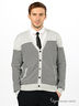 Детали: V-образный вырез горловины, застежка на пять пуговиц, рукав длинный с небольшой трикотажной манжетой-резинкой, низ изделия посажен на трикотажную резинку, два прорезных кармана.