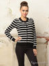 Кардиган с длинными рукавами и округлым вырезом горловины. Застежка на пуговицы. Модная расцветка в полоску. Отличный вариант на каждый день.
