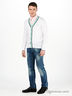 Детали: застегивается на пуговицы; нижняя резинка и манжеты в мелкий рубчик; окантовка выреза, переходящая в планку с пуговицами декорирована контрастными полосками