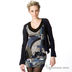 Двубортный приталенный кардиган на четырех пуговицах с V-образным вырезом горловины. Акцентом являются присборенные ажурные края рукавов и баска.