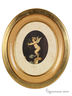 Картина с изображением ангелочка в фигурной раме из натурального дерева.