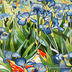 Очень тонкая, изысканная вышивка Ву Хуанг. Спокойные и вместе с тем яркие и сочные тона зеленого и синего шелка дарят гармонию, умиротворение, нежность, располагают к созерцательному настроению. Ирисы по древней философии фен-шуй - жизнь, не знающая старости. Оформление картины(багет), может отличаться от представленного на сайте.