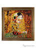 Тонкая, элегантная авторская вышивка. Выполнена известной современной мастером-вышивальщицей Чанг Вэй трудилась над ней 5 месяцев. Использовала около 1000 оттенков богатой палитры натуральных шелковых нитей. Пара в золотом сияние одежд, сомкнувшая объятья на краю обрыва, на ковре, сплетенном из трав и цветов. Женщина в ожидании поцелуя, мужчина, что подарит его ей. Руки и лица в обрамлении золота и самоцветов узоров. Здесь нет ни пространства, ни времени, ни движения. Мгновение застыло в вибрирующем золотом тиснении фона. Биению его слабого пульса вторят символы орнамента, стекающие с их одежд и оплетающие их… Знаменитый "Поцелуй" Густава Климта, жемчужина живописи рубежа XIX и ХХ века из коллекции Австрийской галереи. По древней философии фен-шуй изображение девушки, особенно с длинными волосами дарует здоровье, молодость, счастье. Золотой цвет многократно усиливает положительную энергетику.