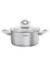 Кастрюля 20 см со стеклянной крышкой. Материал: высококачественная нержавеющая сталь 18/10. Жаропрочные пластиковые ручки со вставками цвета металлик. Вместимость: 2,8 л. Высота: 9,5 см. Матовая поверхность снаружи и блестящая глянцевая поверхность внутри, измерительная шкала для определения литража. Прочное трехслойное капсульное дно. Крышка из термостойкового закаленного стекла имеет отверстие для отвода пара. Подходит для всех типов плит. Можно мыть в посудомоечной машине.