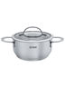Кастрюля 18 см со стеклянной крышкой. Материал: высококачественная нержавеющая сталь 18/10. Жаропрочные металлические ручки. Вместимость: 2,0 л. Высота: 8,5 см. Крышка с отверстием для отвода пара из термостойкового закаленного стекла. Матовая поверхность снаружи и блестящая глянцевая поверхность внутри, измерительная шкала для определения литража. Прочное трехслойное капсульное дно. Подходит для всех типов плит. Можно мыть в посудомоечной машине.