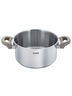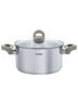 Кастрюля 22 см со стеклянной крышкой. Материал: высококачественная нержавеющая сталь 18/10. Жаропрочные металлические ручки с пластиковыми держателями. Вместимость: 4,2 л. Высота: 11,5 см. Блестящая глянцевая поверхность снаружи и внутри, измерительная шкала для определения литража. Прочное трехслойное капсульное дно. Крышка из термостойкового закаленного стекла имеет отверстие для отвода пара. Подходит для всех типов плит. Можно мыть в посудомоечной машине.