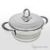 Кастрюля изготовлена из нержавеющей стали с идеальным сочетанием в сплаве таких химических элементов, как железо, углерод, хром, никель. Это самый универсальный и оптимальный по своим качественным и гигиеническим характеристикам материал, который отвечает всем современным требованиям, предъявляемым к посуде. Кастрюля имеет оптимальную толщину стенок и дна, идеально подогнанные крышки и изготавливается по уникальной технологии. Дно сделано из трёх чередующихся слоев (нержавеющая сталь и алюминий) по так называемой технологии «сэндвич». Это позволяет равномерно распределять тепло по поверхности, предохраняя пищу от подгорания, существенно сократить время приготовления блюд, а также минимизировать количество используемого масла и воды, используя собственные жиры и влагу, содержащиеся в продуктах. Полые ручки позволяют взяться за них в процессе готовки и не обжечься. Крепятся к борту кастрюли с помощью прочной точечной сваркой, что гарантирует надёжность и прочность.