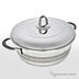 Кастрюля изготовлена из нержавеющей стали с идеальным сочетанием в сплаве таких химических элементов, как железо, углерод, хром, никель. Это самый универсальный и оптимальный по своим качественным и гигиеническим характеристикам материал, который отвечает всем современным требованиям, предъявляемым к посуде. Кастрюля имеет оптимальную толщину стенок и дна, идеально подогнанные крышки и изготавливается по уникальной технологии. Дно сделано из трёх чередующихся слоев (нержавеющая сталь и алюминий) по так называемой технологии «сэндвич». Это позволяет равномерно распределять тепло по поверхности, предохраняя пищу от подгорания, существенно сократить время приготовления блюд, а также минимизировать количество используемого масла и воды, используя собственные жиры и влагу, содержащиеся в продуктах. Полые ручки позволяют взяться за них в процессе готовки и не обжечься. Крепятся к борту кастрюли с помощью прочной точечной сваркой, что гарантирует надёжность и прочность.