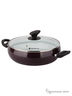 Толщина стенок и дна 2,5 мм, внутренне покрытие: антипригарное керамическое (2 слоя), внешнее покрытие: бордовая жаропрочная эмаль, бакелит ручки. Окрашенное дно. Уникальное на российском рынке нанесение керамики на форму Belly.