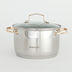 Стальная кастрюля со стеклянной крышкой и золотистыми ручками