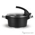 Для всех видов плит, включая индукционные и стеклокерамические. Корпус из литого алюминия, внутреннее антипригарное покрытие BIOTANK PRO из 3-х антипригарных слоев, внешнее тефлоновое покрытие, двойное дно из нержавеющей стали не деформируется, сохраняет температуру, экономит электроэнергию и удерживает тепло. Короткие жаропрочные ручки из литой стали с силиконовыми вставками. Стеклянная откидывающаяся крышка с ручкой. Долговечность, легкость очистки.