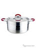 3,7л, (20см), крышка из нержав. стали, ручки из нержав. стали с силикон. покрытием, стенки-0,7мм, капсулир. дно, поверхность матовая с тремя зерк. полосками. Состав: нержав. сталь.
