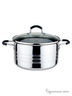5,8л, (24см), крышка стекл., ручки из нержав. стали с силикон. покрытием, стенка 0,7мм, капсулир. дно, поверхность зерк. с тремя матов. полосами. Состав: нержав. сталь.