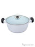 6,1л(28см), крышка стекл., ручка бакелит./силикон. покр., стенка 2мм, двухсл. антиприг. керам. покрытие с нанокомпонентами, внешнее жарост. лаковое покрытие белое. Состав: литой алюминий.