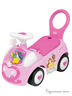 Каталка - пушкар "Принцесса" оснащена музыкальным и световым эффектом. Впереди руля в специальном отверстии помещены фигурки принцесс из известных диснеевских мультфильмов. Они двигаются и кружатся под приятную музыку и исполняют песенки. Если повернуть ключ зажигания и нажать кнопку сцепления, раздастся рёв мотора и сигнальный гудок. Ещё одно дополнение – волшебная палочка с магическим звуком.